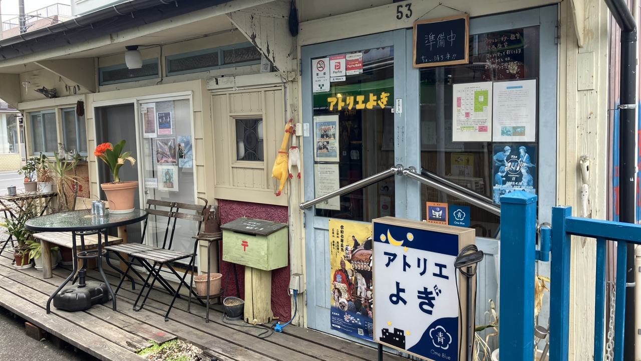 「アトリエよぎ」は、青梅駅から徒歩4~5分の永山公園通りから少し路地を入ったところにあります。古い民家をリノベーションした味わいある雰囲気があり、店内も楽器やアーティストのポスターが飾られ、音楽好きさんが集うお洒落な空間になっています。